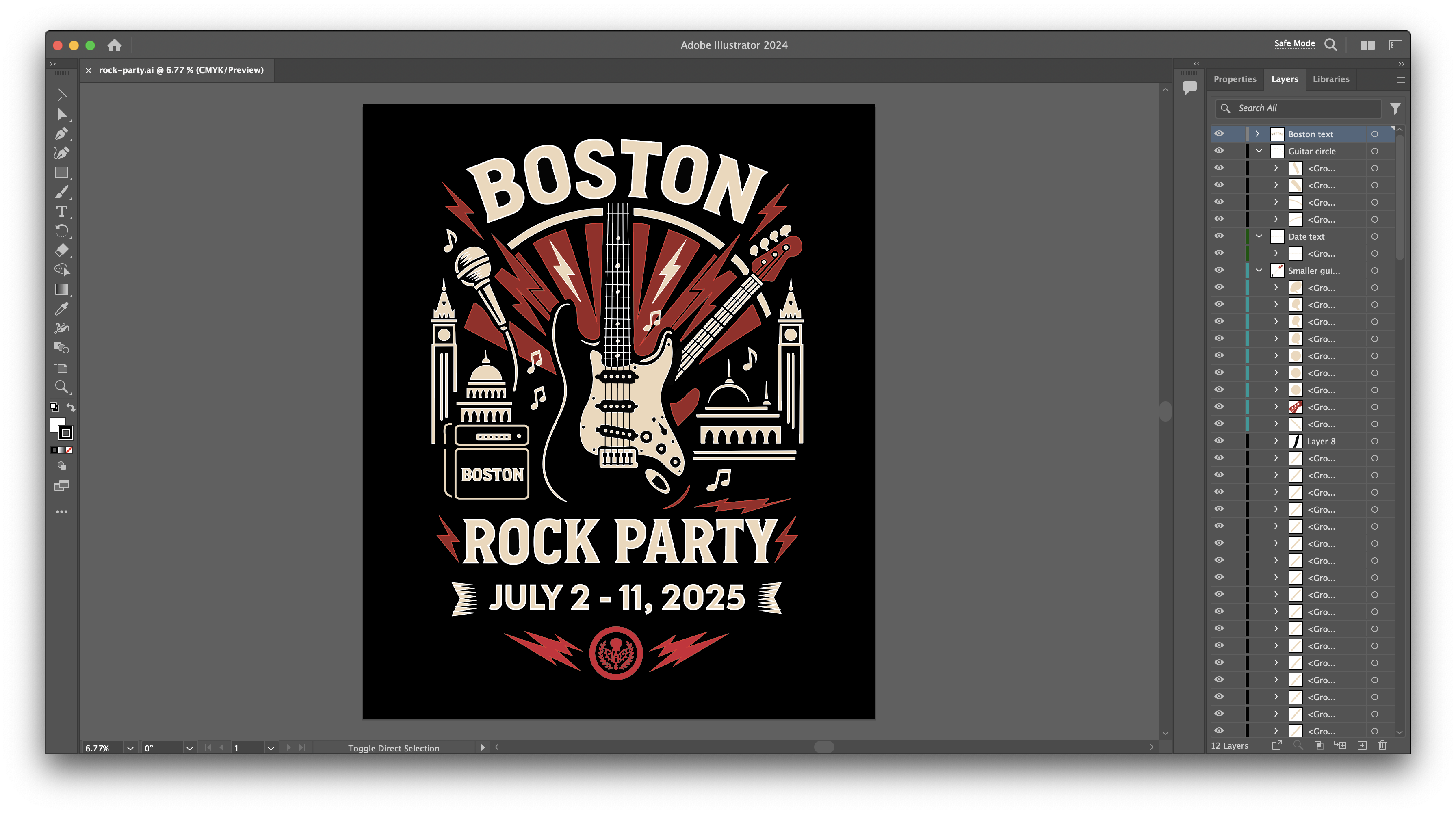 Boston Rock Party is a music festival that celebrates the vibrant rock music scene in Boston. I designed a t-shirt for the event that captures the spirit of the festival, featuring bold graphics and vibrant colors.
